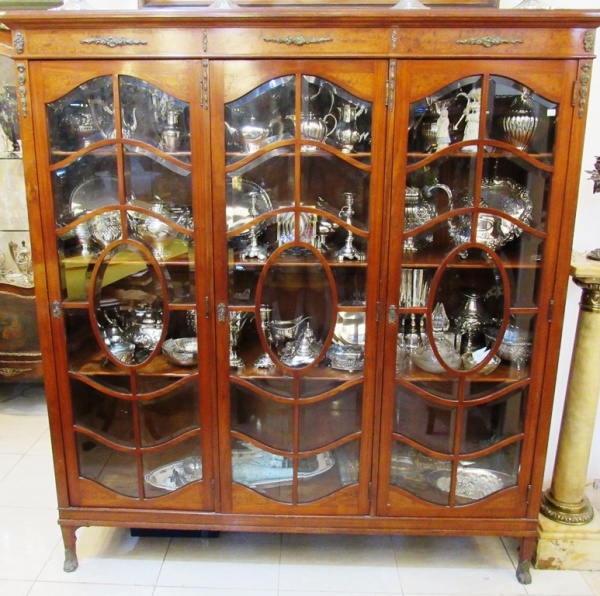 • Bela estante para livros em rádica com prateleiras internas em madeira e 3 portas de vidro. Detalhes em bronze. Possivelmente de fabricação da renomada casa LEANDRO MARTINS. Brasil, início do séc. XX. Medidas: 165 cm x 43 cm; Altura: 180 cm.
