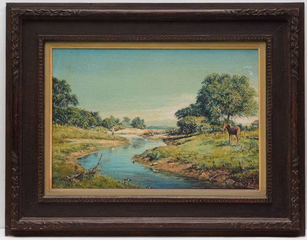 • WIN VAN DIJK (Westmaas, Holanda, 1905  Petrópolis, Rio de Janeiro, 1990) - "Praia de Armação dos Búzios" - óleo sobre tela. Assinado no c.i.d. Localizado e datado no verso 1958/59. Medidas da tela: 50 cm x 73 cm. Medida da moldura: 82 cm x 105 cm.