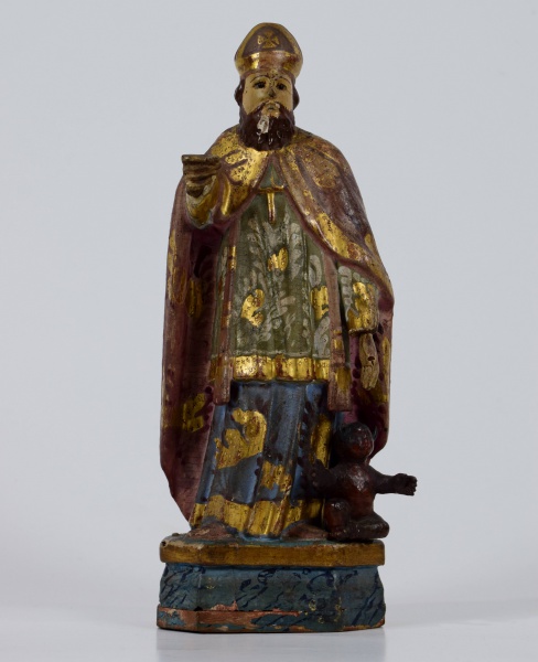• Imagem sacra em madeira policromada. Brasil, século XIX. Altura: 24 cm.