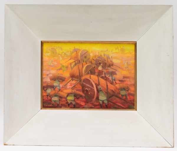 • ENRICO BIANCO (Roma, Itália, 1918 - Rio de Janeiro, Brasil, 2013) - "Colheita" - Pintura óleo sobre placa. Assinada no c.i.e. e datada no verso 1993. Medida da placa: 27 cm x 35 cm. Medida da moldura: 50 cm x 60 cm.