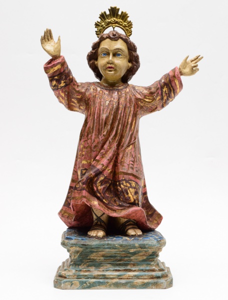 • ARTE POPULAR - Imagem de Menino Deus em madeira policromada. Altura: 47 cm.