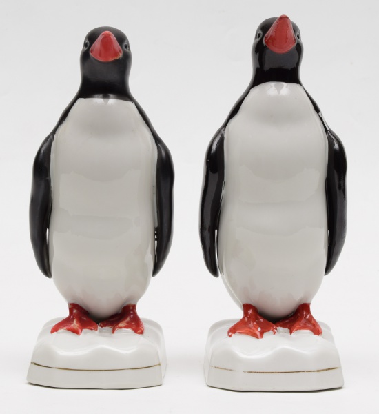 • Par de pinguins em porcelana nacional Santana - Pedreira. Medida da base: 10 cm x 8,5 cm. Altura: 22 cm.