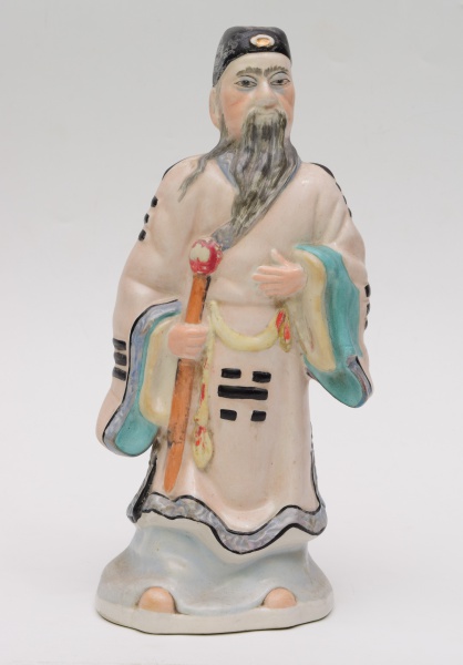 • Estatueta de porcelana chinesa representando a figura de ancião/sábio. Altura: 29 cm.