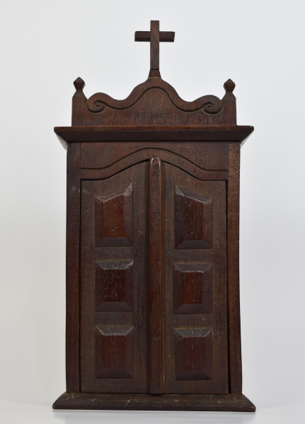• Oratório em madeira nobre. Medidas: 22 cm x 11 cm. Altura: 40 cm.