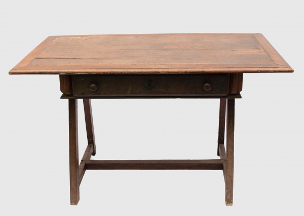 • Mesa rústica mineira tipo cavalete com 1 gaveta. Medidas: 135 cm x 76 cm .Altura: 81 cm.