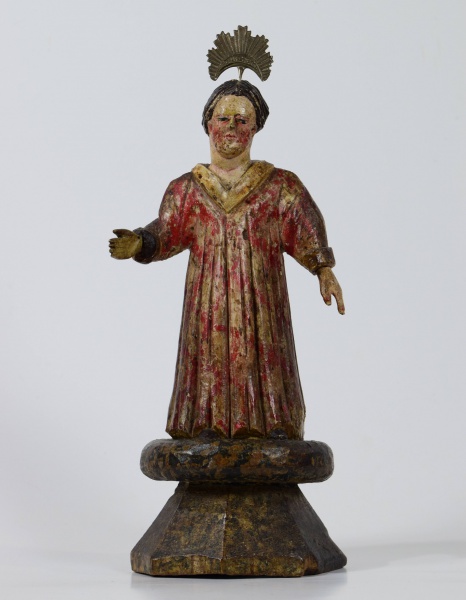 • Imagem sacra em madeira policromada. Brasil, século XIX. Altura: 31 cm.