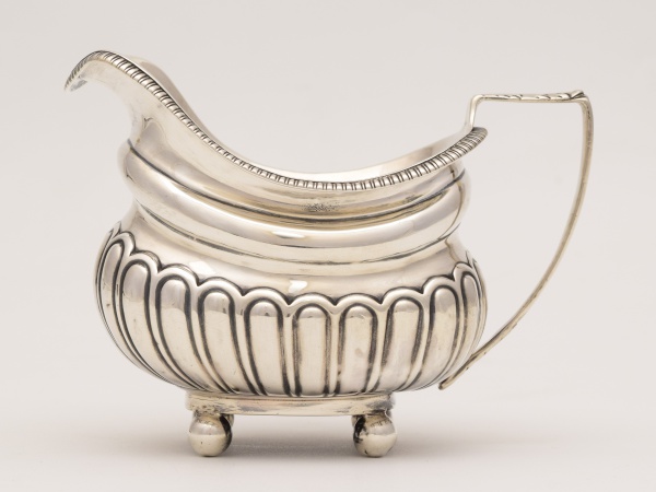 • Cremeira em prata inglesa. Contrastes ilegíveis. Medidas: 14 cm x 8 cm. Altura: 10 cm. Peso 143 g.