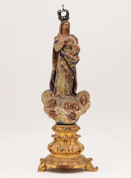 • Imagem de Nossa Senhora da Conceição em madeira policromada. Portugal, século XVIII-XIX. Altura: 50 cm.