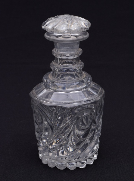 • Licoreira de cristal francês lapidação dedão, tampa lascada. Altura: 22 cm.