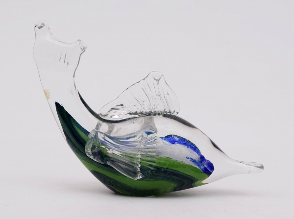 • Peixe em murano colorido. Medidas: 17 cm x 6 cm. Altura: 12 cm.