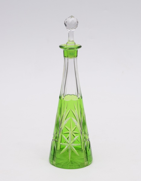 • Garrafa/licoreira em cristal Tcheco na cor verde. Altura: 28 cm