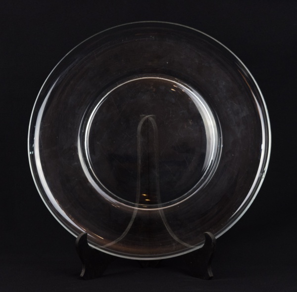 • Prato para bolo em demi-cristal. Apresenta pequeno bicado na borda. Diâmetro: 46 cm.