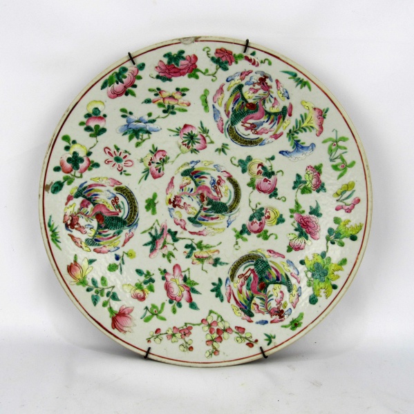 • Prato de porcelana Cia das Índias. Apresenta leve bicado na borda. Diâmetro: 35 cm.
