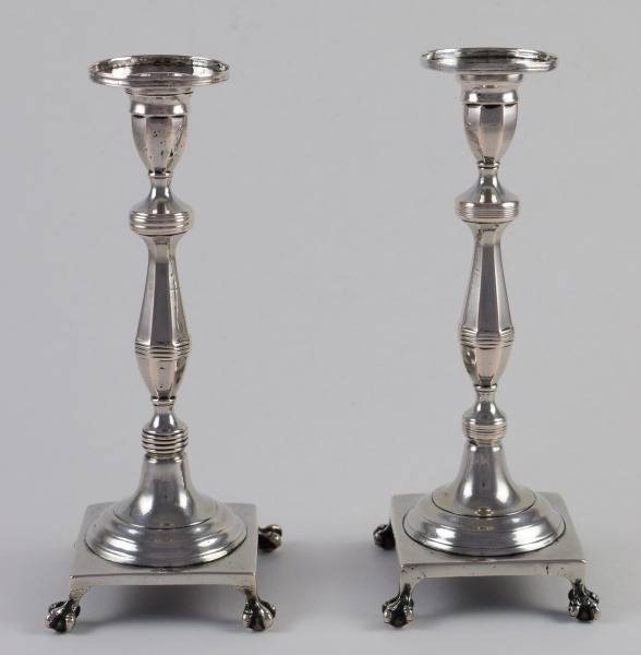 • Par de castiçais em prata brasileira do século XIX, sem marcas de contraste. Altura: 23,5 cm. Peso: 700 gramas