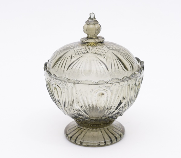 • Bela compoteira em vidro antiga, dita gota, na cor fumê. Diâmetro: 17 cm e altura: 21 cm