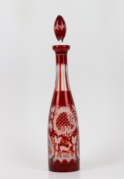• Licoreira em cristal da Bohemia na cor vermelha. Acompanha a tampa original. Altura 41cm