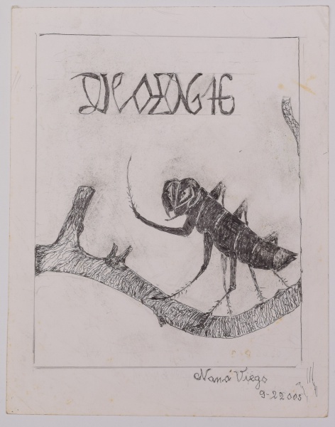• NANÁ VIEGO (Cuba 1928 - Rio 2011) - "Grilo" - desenho nanquim sobre cartão - assinado no c.i.d. e datado 9-2-2005. Medidas 38 cm x 50 cm. Sem moldura.