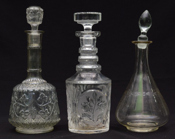 • Lote composto de 3 garrafas, sendo 2 de vidro (31 cm) e 1 de cristal da Bohemia (29 cm).