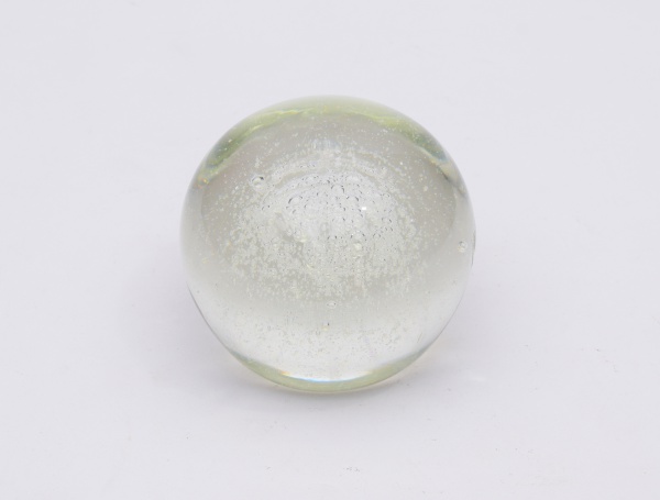 • Grande Bola  em cristal  translucida, com bolhas no seu   interior  diâmetro  10 cm. Altura  10 cm.
