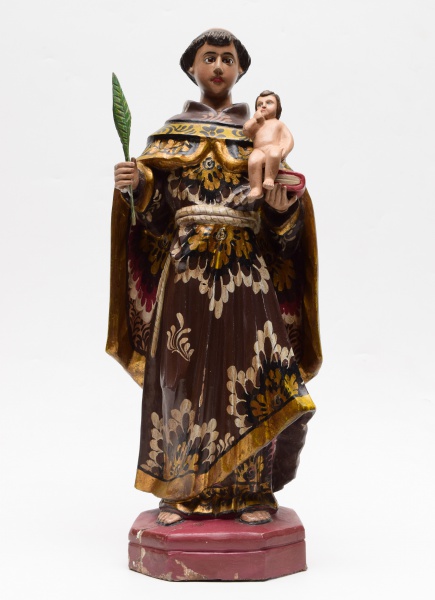 • ARTE POPULAR - Imagem de Santo Antônio em madeira policromada. Altura: 60 cm.