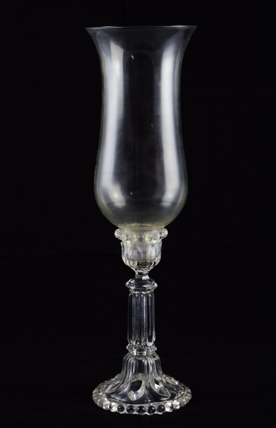 • Castiçal de cristal francês com manga da manufatura Baccarat, gravado na base. Início séc. XX. Altura total: 50 cm.