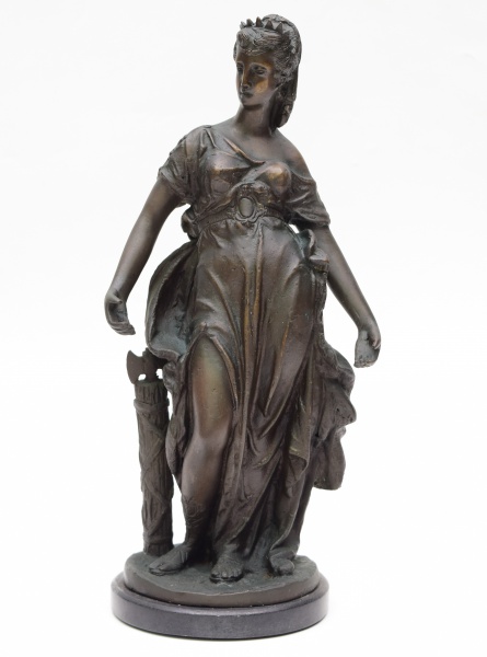 • Escultura de figura feminina em bronze. Base de marmore com restauro. Altura: 40 cm.