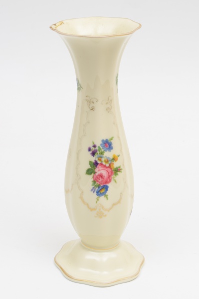 • Vaso em porcelana Fürstenberg com detalhes de rosas. Apresenta sinal de colagem na borda Altura: 26 cm.