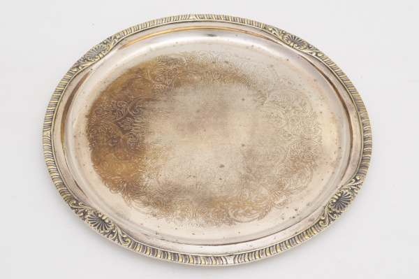• Salva de metal prateado Belprata90. Diâmetro: 32 cm