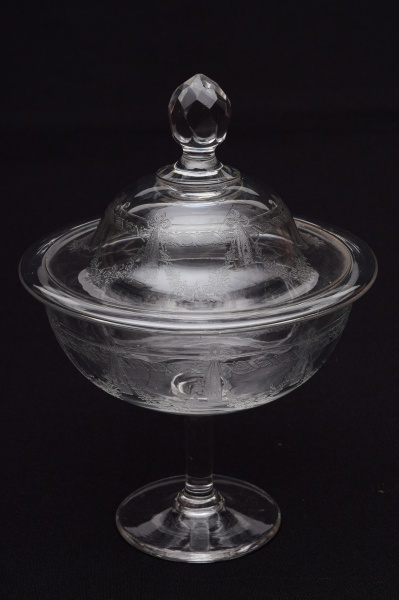 • Compoteira em cristal francês St Louis. Pequeno bicado na borda da tampa. Altura: 22 cm.