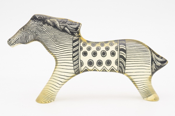 • Abraham Palatnik (Natal, 19 de fevereiro de 1928 - Rio de Janeiro, 9 de maio de 2020) - Escultura cinética representando "cavalo" em resina de poliester. Medidas: 13,5 x 24,5 cm.