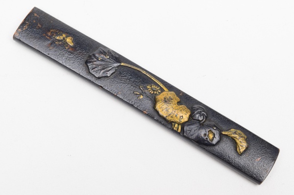 • MENUKI - ornamento de bronze utilizado em katana. Medida: 3,5 x 1,5 cm.