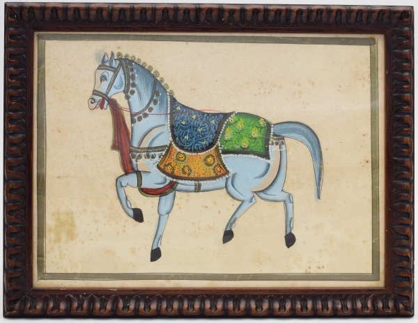 • Pintura oriental sobre tecido em moldura com vidro. Medidas da pintura: 22 x 30 cm. Medida da moldura: 27 x 35 cm.