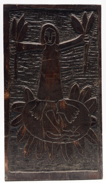 • ARTE POPULAR - ROMILDO (Atribuído) - Placa de madeira entalhada, sem assinatura. Medidas: 70 cm x 39 cm.
